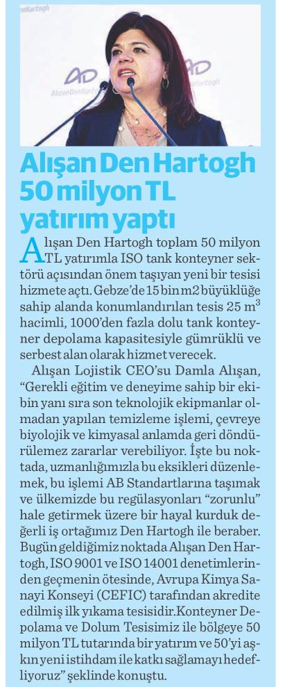 Alışan Den Hartogh 50 Milyon TL Yatırım Yaptı-DÜNYA GAZETESİ